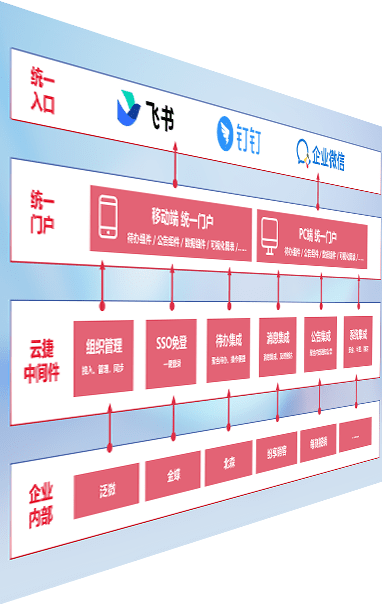 对协作平台提供支持服务,,,支持企业应用与协作平台对接,,,,包含组织同步、、消息集成、、待办集成等。。。支持目前主流的协作平台:钉钉、、、企微和飞书。。