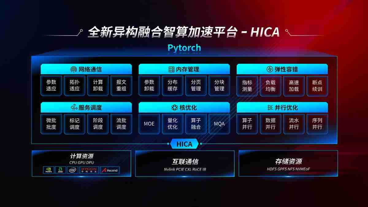 通过自研的服务层、、、、中间适配层、、、、以及调度编排算法,,采用数据并行、、模型并行等多种并行方式,,,,把并行计算任务进行有效的分解,,,使其分别由相应的软件栈和算力资源来承接。。。当GPU资源变化,,,HICA可以实时动态调度计算子任务并调整模型拓扑和架构,,,,以充分聚合各种算力资源。。。。